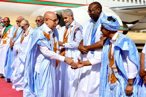 أغشوركيت ( الأخبار الوطنية ) : خصص سكان مقاطعة تمبدغة، بولاية الحوض الشرقي، اليوم الخميس، استقبالا شعبيا حاشدا لرئيس الجمهورية، السيد محمد ولد الشيخ الغزواني، لدى وصوله إلى مطار مدينة النعمة في مستهل زيارة تشمل جميع مقا