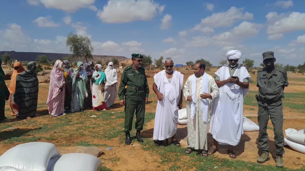 أغشوركيت ( الأخبار الوطنية ) : قدمت مفوضية الأمن الغذائي، أمس الاثنين مساعدات غذائية 70 أسرة، متضررة من العواصف والأمطار الأخيرة، في قريتيْ التقادة الواسعة ولمجاجطة التابعتين لبلدية كامور، في مقاطعة گرو.