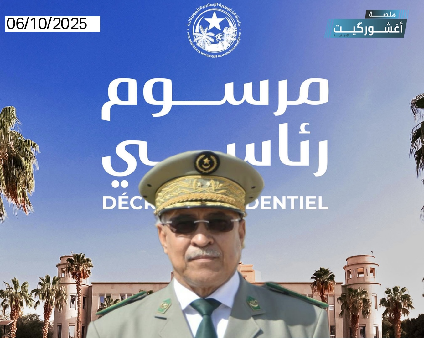 أغشوركيت ( الأخبار الوطنية ) : أعلنت رئاسة الجمهورية، اليوم الاثنين، تعيين الفريق إبراهيم فال الشيباني قائداً لأركان الحرس الوطني.