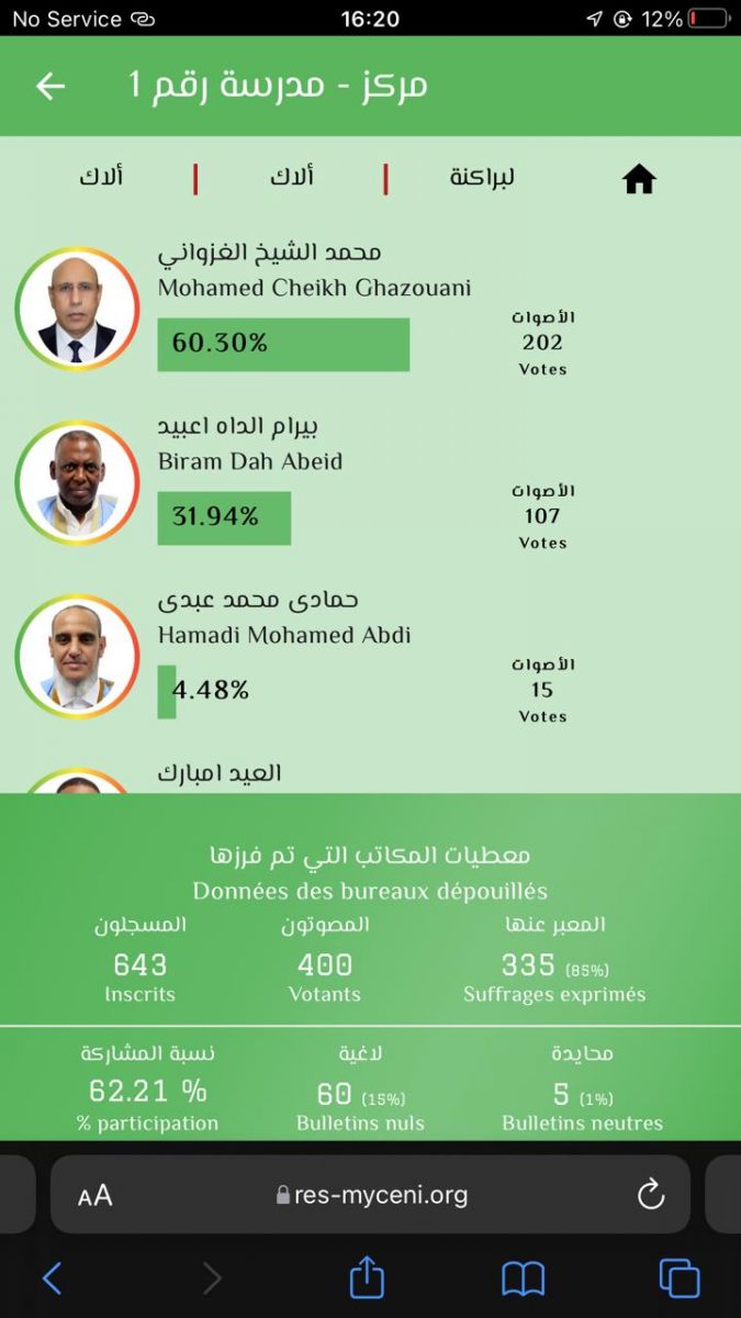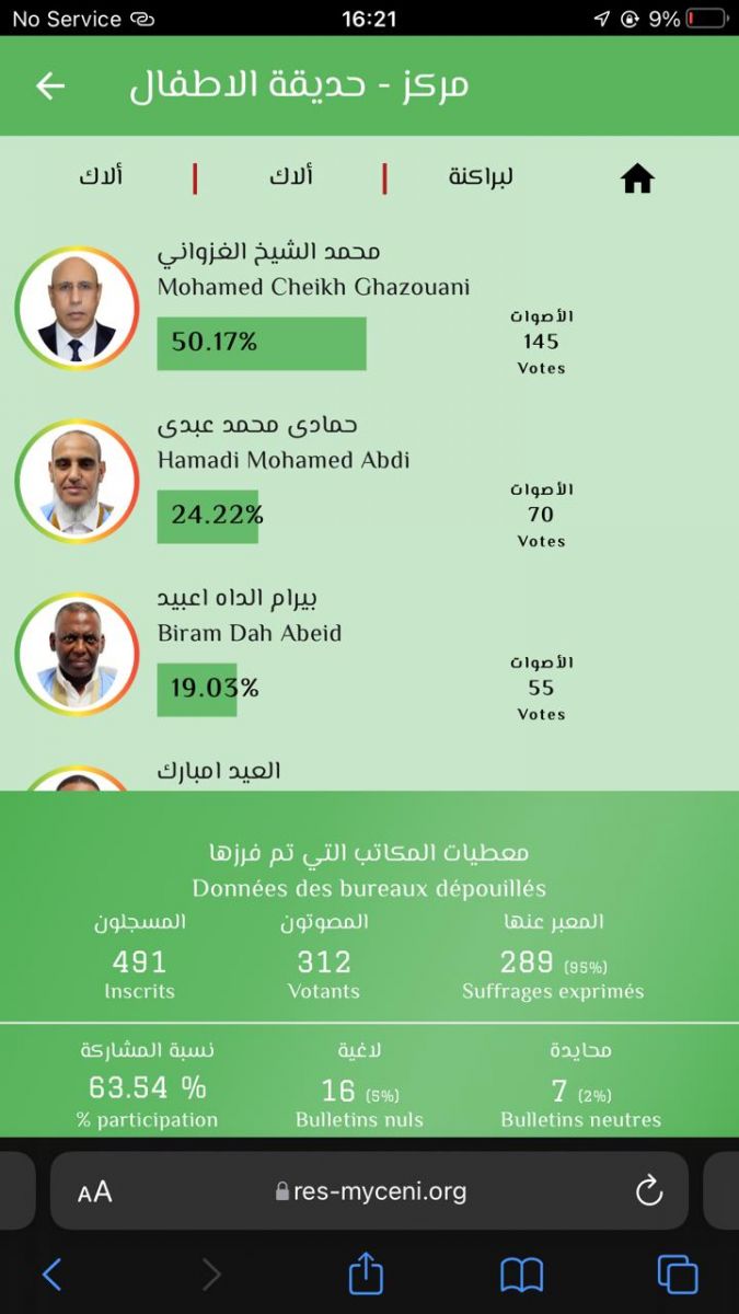بيرام الداه اعبيد : 1334 صوتا